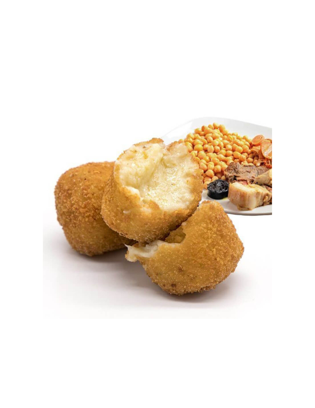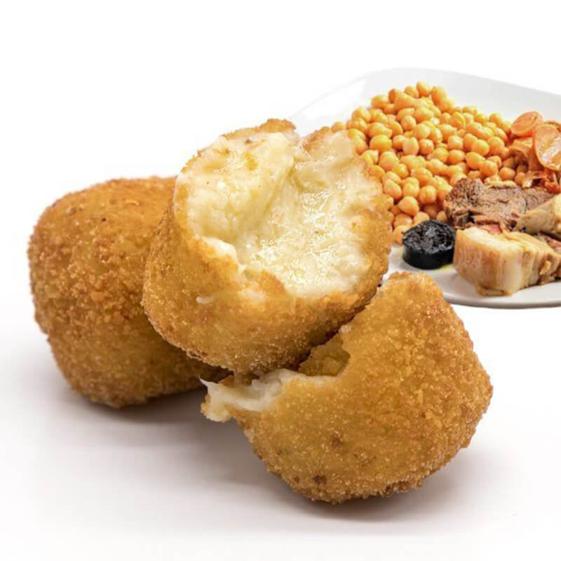 Cocido Stew Croquettes are perfect for party food or a tapas dinner at home. Do not previously thaw, fry in hot oil (180ºC) until it's browned and leave to rest for 2 minutes.