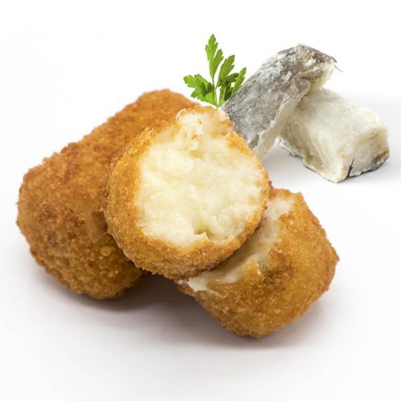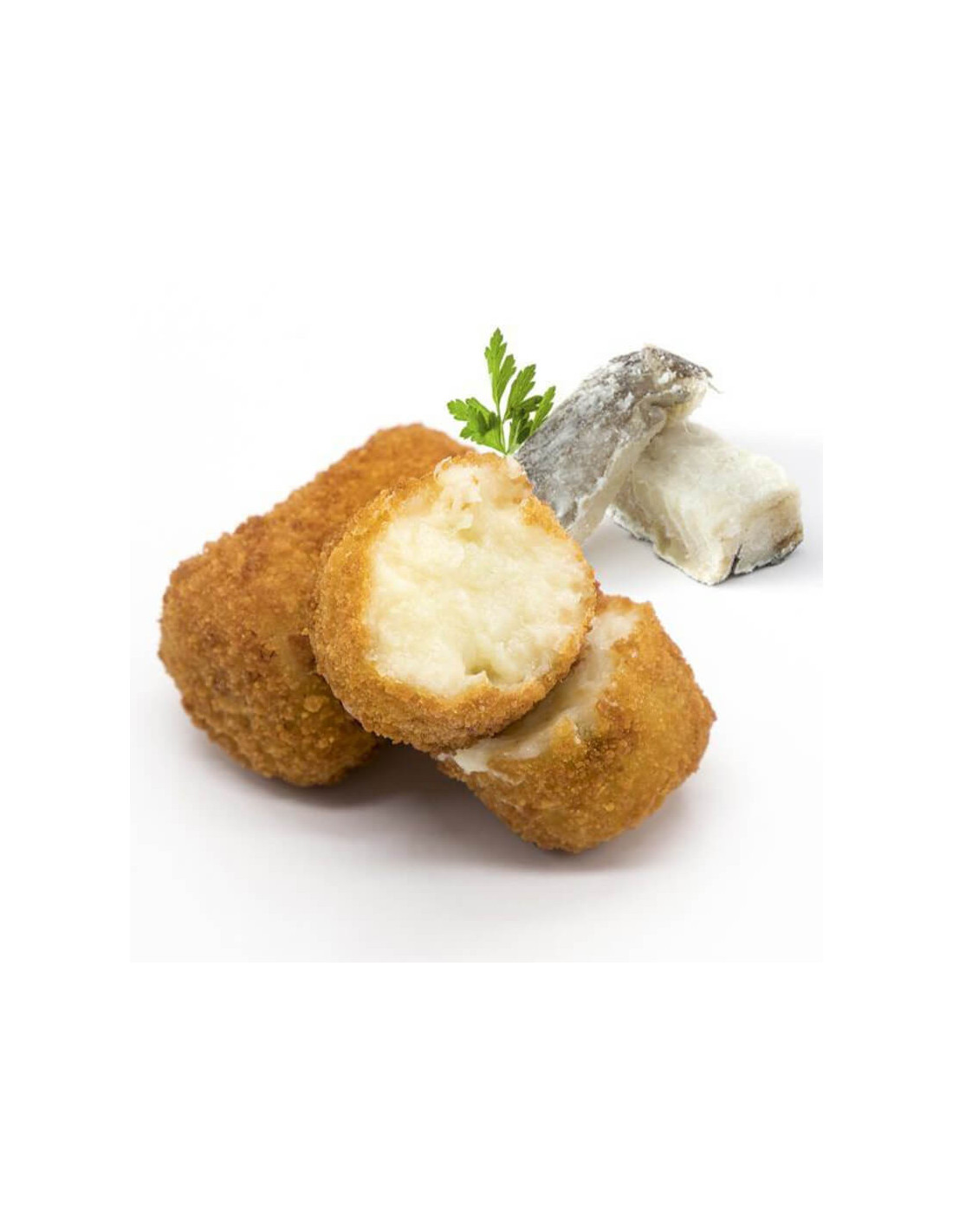 Cod croquetas are one of the most typical Spanish tapas. Filled with a creamy bechamel and fine bacalao, tossed in breadcrumbs, are ready to fry and enjoy. They are a delight for any fish lover. Do not previously thaw, fry in hot oil (180ºC) until it's browned and leave to rest for 2 minutes.
