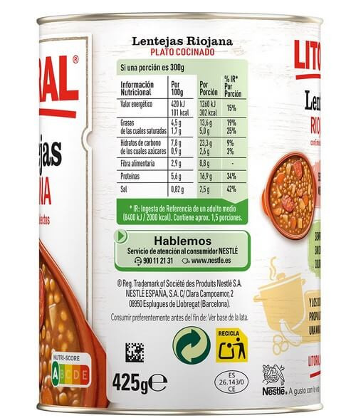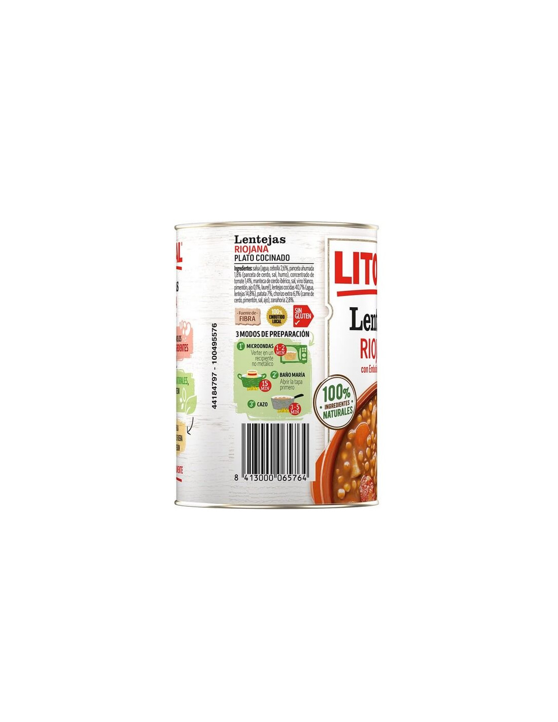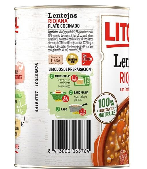 cooked lentils 40.7% (water, lentils 14.8%), potato 7%, extra chorizo 6.1% (pork, paprika, salt, garlic), carrot 2.8% - Gluten Free