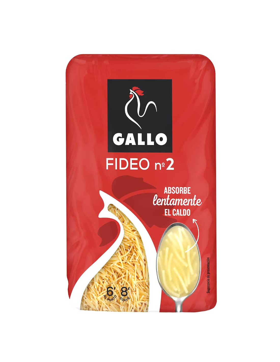 Bring the comforting flavours of traditional Spanish cuisine into your kitchen with Gallo Fideo Nº2, a medium-cut noodle specially crafted to absorb flavour slowly and deliver an authentic taste in every spoonful. Made from superior-quality durum wheat semolina, these golden strands are a staple in countless Spanish homes—and now, yours too.