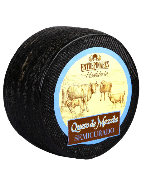 Wrapped in a classic black wax rind with the signature herringbone pattern, and proudly labelled under the Entrepinares Hospitality line, this cheese is made for sharing – ideal for tapas, cheese boards, or slicing into sandwiches.
