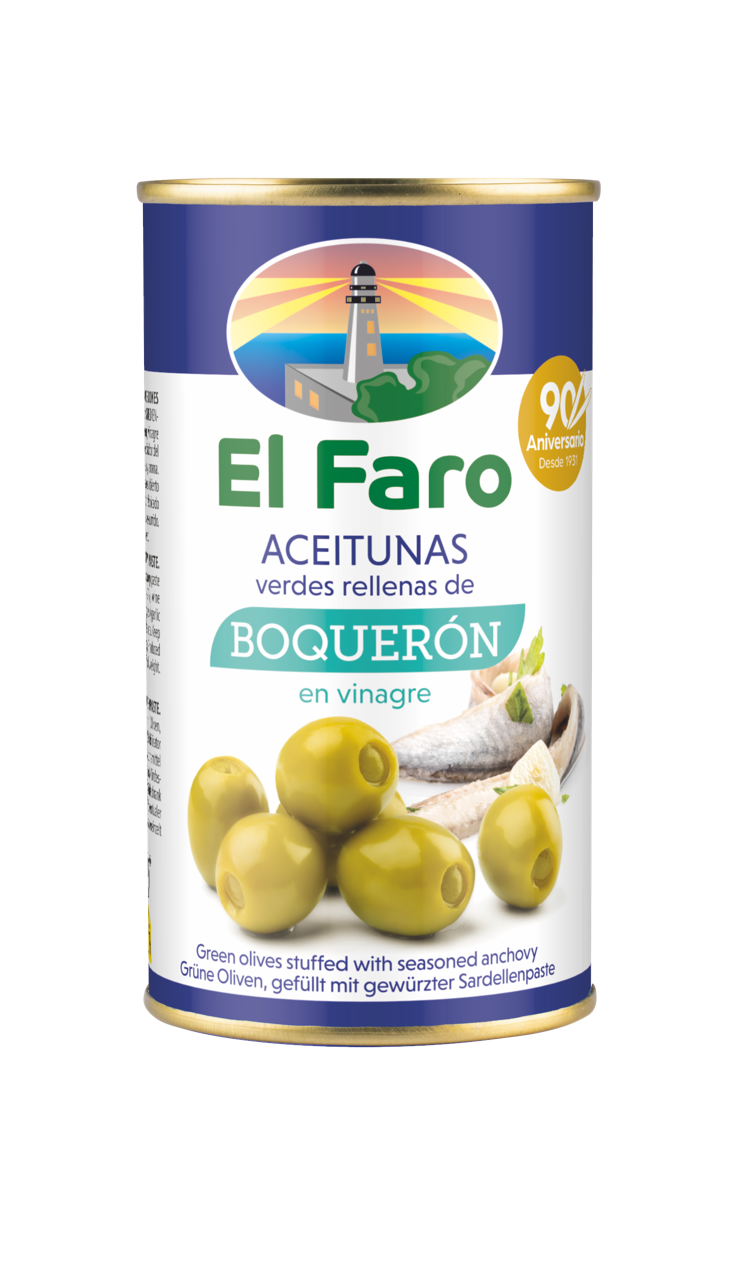 Discover the iconic Spanish tapa in a single bite with El Faro’s Green Olives Stuffed with Boqueron (anchovy) paste. Packed in Murcia and celebrating over 90 years of Spanish olive mastery, these hand-selected olives are filled with a seasoned anchovy paste (boqueron in vinegar), delivering a balanced mix of briny richness, zesty vinegar, and herbal undertones.