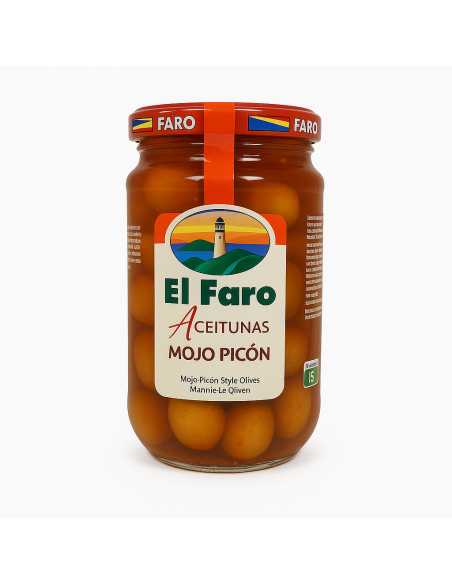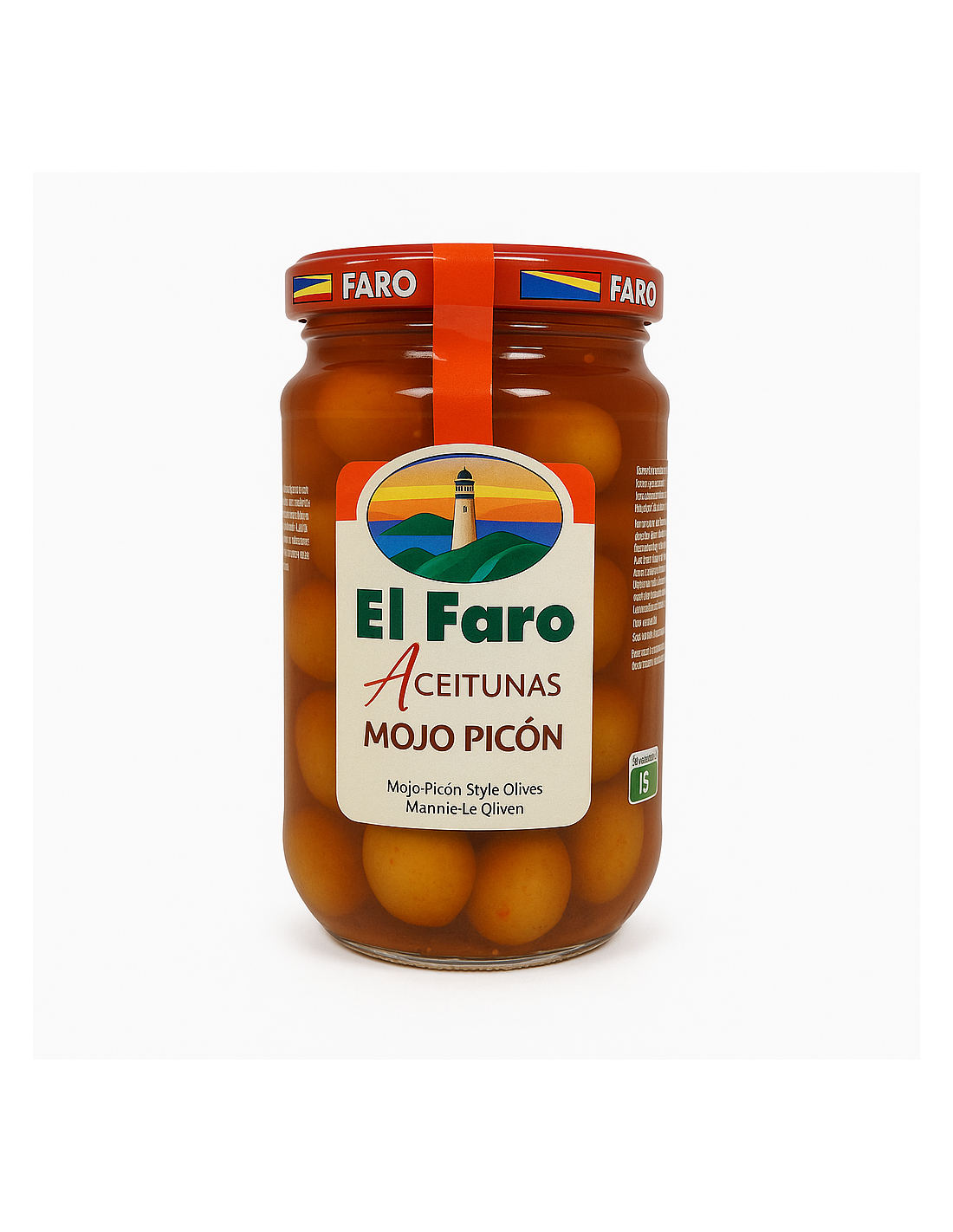 Savour the bold spirit of the Canary Islands with El Faro’s Mojo Picon Style Olives – a fiery fusion of traditional Spanish olives marinated in a zesty, garlicky Mojo Picon brine. Bursting with Mediterranean flavour and perfectly balanced with heat, these whole green olives are a must for any tapas platter, charcuterie board, or gourmet snacking moment.