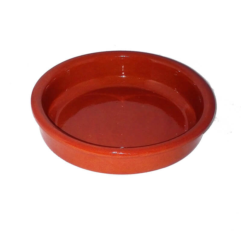 These terracotta dishes are made in Spain and is rustic earthenware made from true terracotta. The glaze on the cazuelas is lead-free, perfectly safe for all applications; oven, stove-top, microwave and dishwasher. This diameter is perfect to put sauces in, or to lay it beside other tapas dishes to put the olive pits or stems in.