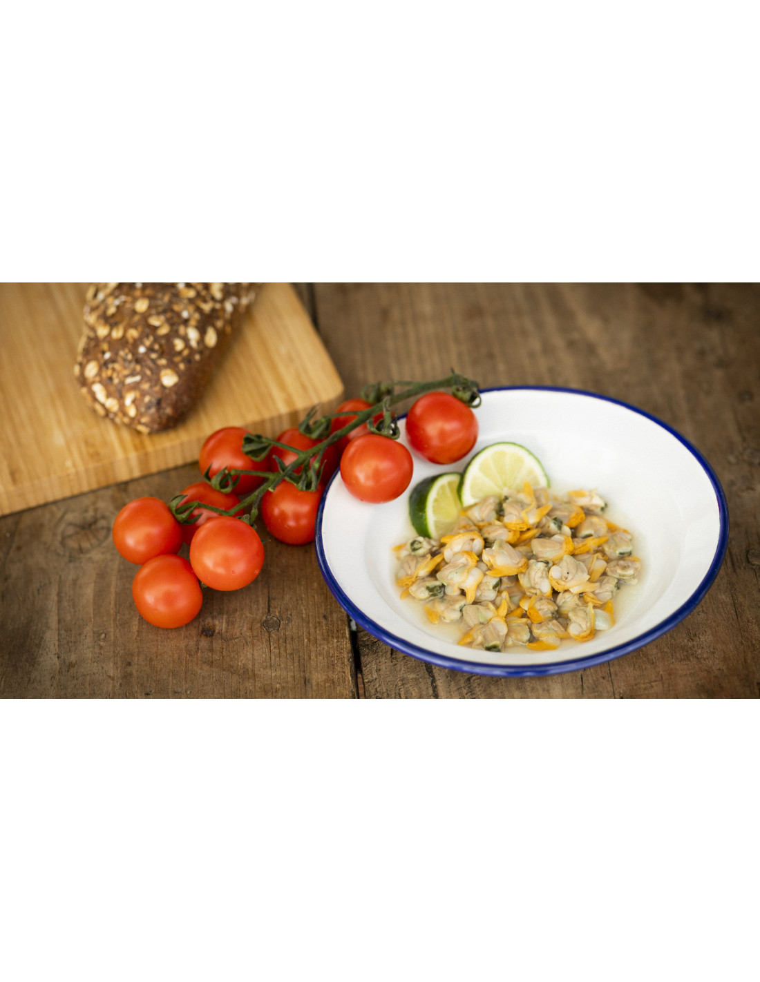 With a tender yet firm texture, a soft sea aroma and a clean mineral flavour, Portomar cockles represent the authenticity of traditional Spanish conservas. Their natural brine highlights the freshness of the mollusc without masking its taste. Perfect as part of any seafood tapas selection, they can be enjoyed straight from the tin, served with a squeeze of lemon, or paired with a crisp white wine or cold beer. Their small 60-70 calibre makes them particularly elegant and refined.